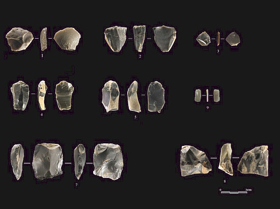 青池遺址第I發(fā)掘區(qū)出土的打制石器(舊石器時(shí)代)。天津市文化遺產(chǎn)保護(hù)中心供圖