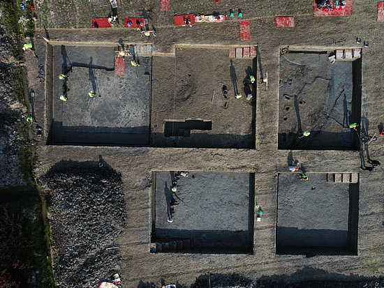 潘家耷遺址發(fā)掘場(chǎng)景航拍。寧波市文化遺產(chǎn)管理研究院供圖