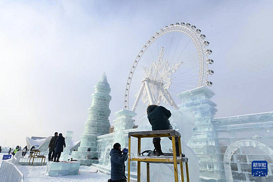 當(dāng)日,在哈爾濱冰雪大世界進(jìn)行的第35屆中國(guó)·哈爾濱國(guó)際冰雕比賽進(jìn)入第二天的賽程,來(lái)自世界各地的30余支參賽隊(duì)伍精心雕琢,盡顯哈爾濱冬季極寒之美。
