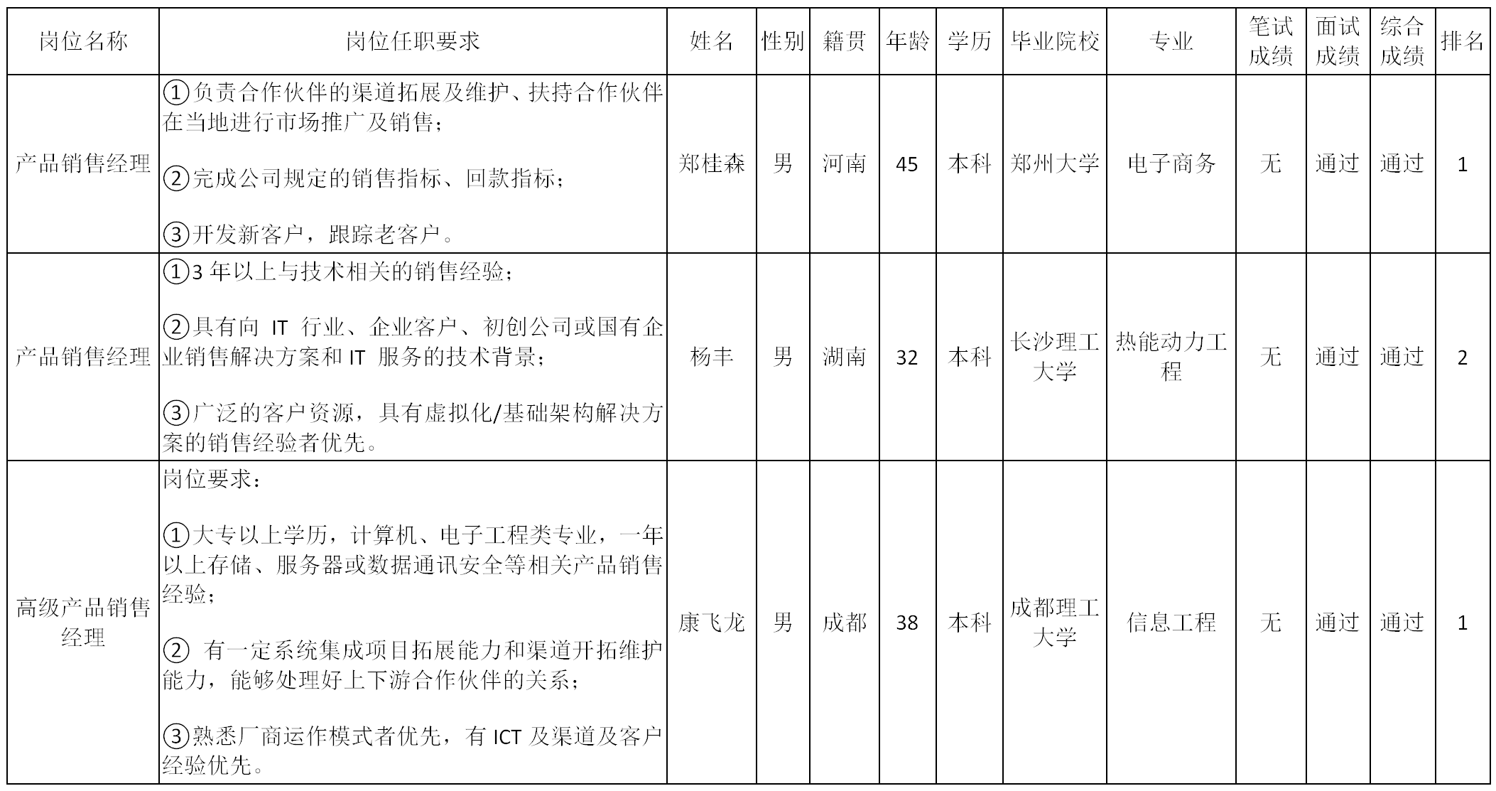根據(jù)四川長虹佳華信息產(chǎn)品有限責任公司發(fā)布的招聘公告及招聘相關規(guī)定,經(jīng)筆試、面試等程序,現(xiàn)將面試成績予以公示。