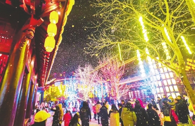 浪漫飄雪、長安街景、國風演藝……綿陽方特東方神畫長安子時夜活動接待逾3萬游客狂歡迎新。