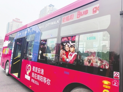 在園藝山“上馬故事”,隨著第二屆“綿陽造”迎春購物節(jié)暨不夜綿Citywalk跨年歡樂購活動重磅推出的“愛綿陽·BUSGO(巴適購)”公交巴士巡游發(fā)車,歡笑聲、歡呼聲響成一片。在這里發(fā)車的是“科技+音樂”線路,此外還有“美食+購物”線路從芙蓉三期廣場發(fā)車,每條線路定制了10輛公交主題巴士,串聯(lián)起綿陽城區(qū)各大活動地點和消費場所。