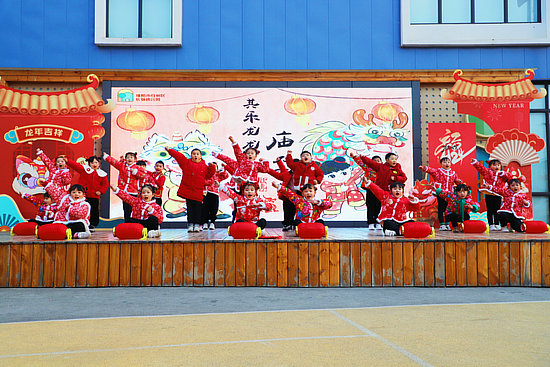 老師們以紅色系為主,在“愛與陽光”的映襯下,以兒童為中心的龍年主題布展靈動鮮活地呈現(xiàn)在幼兒園。整個迎新年活動分為歡天喜地慶開市、妙趣橫生逛廟會、為愛延時見成長三個板塊。
