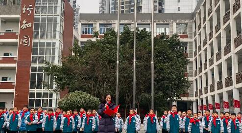 新隊員代表發(fā)言,不僅是對自己的激勵,也是對所有學生作為一個新時代少年應有的風貌展示。而隨著大隊長的呼號,全體隊員的心跳似乎都在此刻同步,共鳴。