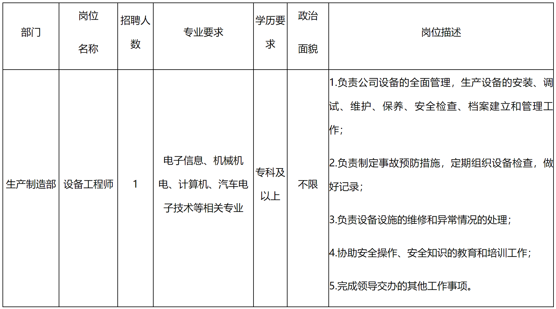 4.技能要求:熟悉電氣自動化設備保養(yǎng)、維修流程及規(guī)范和標準,熟悉強電、弱電專業(yè)知識;