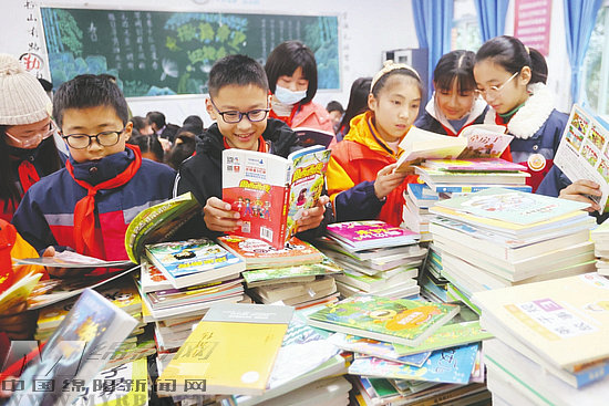 一月八日下午,綿陽市實(shí)驗(yàn)小學(xué)學(xué)生走進(jìn)涪城區(qū)楊家鎮(zhèn)小學(xué)開展“愛心傳遞 共沐書香”活動,城鄉(xiāng)學(xué)子以書會友。 (記者 陳冬冬 攝)