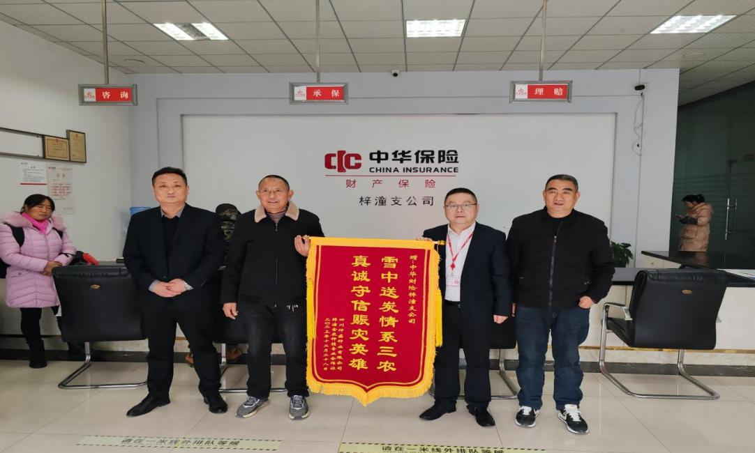 2024年1月8日,中華財險梓潼支公司承保的水稻制種客戶(四川仲盛種業(yè)有限公司)向公司送來“雪中送炭情系‘三農(nóng)’ 真誠守信賑災(zāi)英雄”的錦旗,并稱贊公司農(nóng)險理賠及時,服務(wù)暖心。