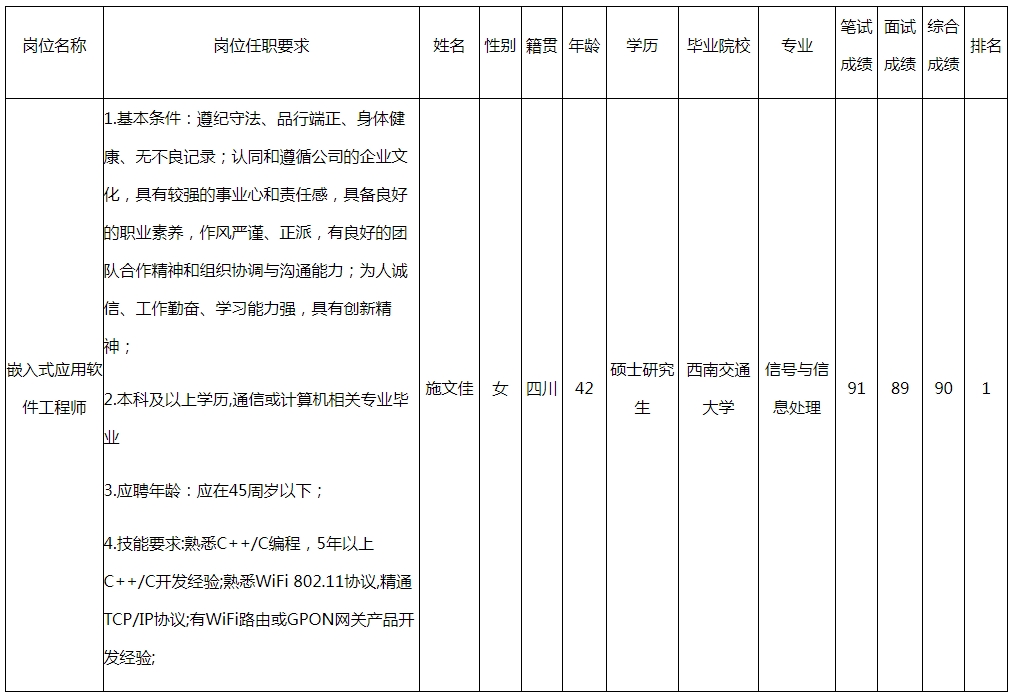 根據(jù)深圳市九洲電器有限公司發(fā)布的招聘公告及招聘相關(guān)規(guī)定,經(jīng)筆試、面試等程序,現(xiàn)將筆試(面試)成績予以公示。