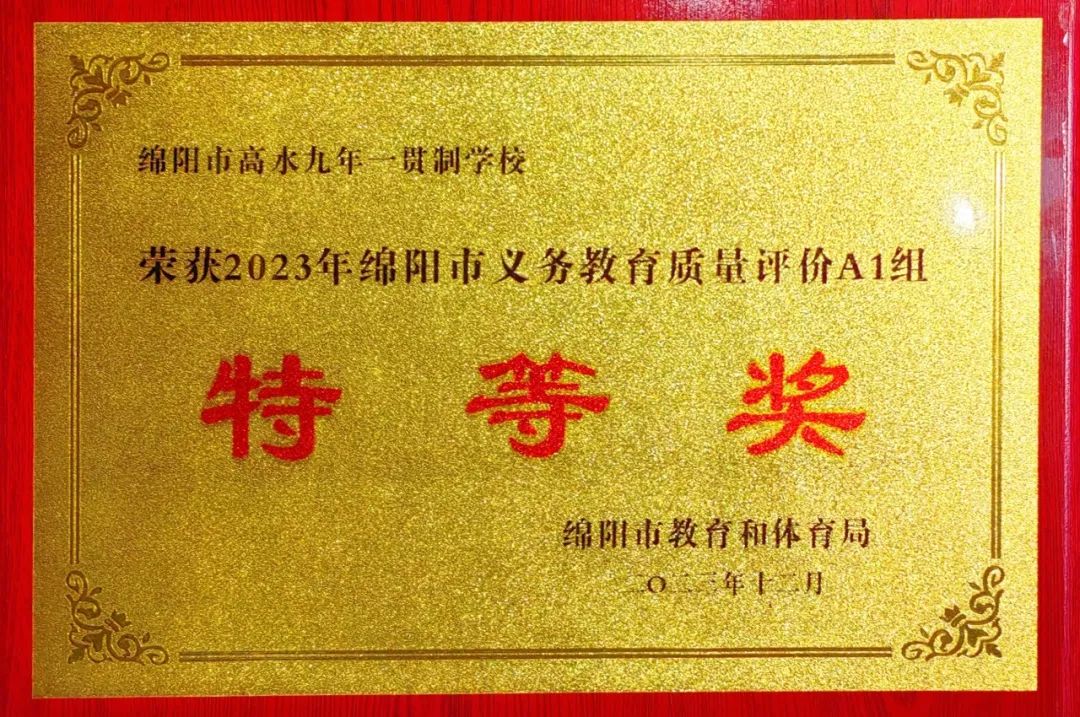 1月5日,在綿陽市學(xué)前教育和義務(wù)教育質(zhì)量工作推進(jìn)會上,綿陽市高水九年一貫制學(xué)校(城北七中)再次以出色的辦學(xué)業(yè)績、卓越的社會口碑、鮮明的辦學(xué)特色榮獲2023年綿陽市義務(wù)教育質(zhì)量A1組特等獎。
