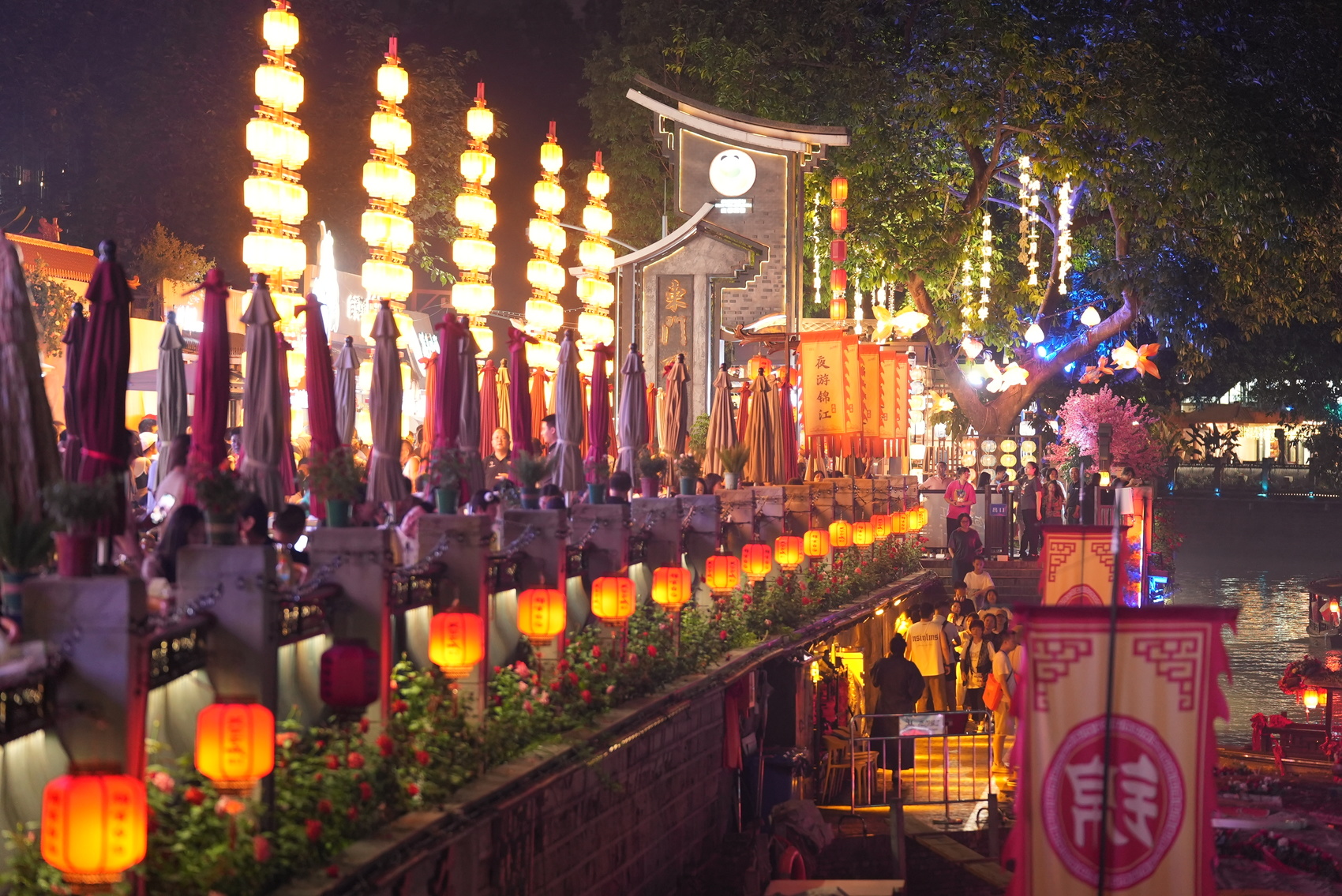 成都錦江夜游音樂(lè)碼頭,夜間經(jīng)濟(jì)活躍。