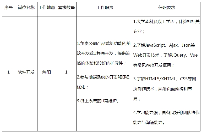 根據(jù)公司經(jīng)營發(fā)展需要,面向社會公開招聘以下崗位: