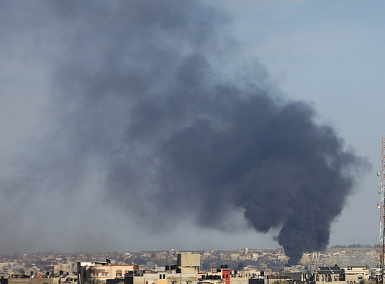 1月13日,加沙地帶南部城市汗尤尼斯遭以色列空襲后升起濃煙。新華社發(fā)(亞西爾·庫(kù)迪攝)