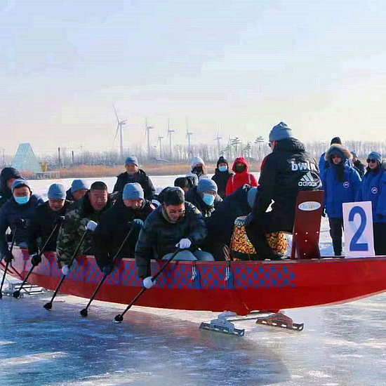 冰上龍舟賽也成了各地推出的特色活動。在黑龍江呼瑪縣,200多名參賽選手組成17支隊伍,在冰天雪地中上演“速度與激情”。冰上龍舟是傳統(tǒng)龍舟的創(chuàng)新和延伸。選手們用龍舟撐推動龍舟在冰上滑行,更具挑戰(zhàn)性和娛樂性。在遼寧錦州,第七屆海洋冰雪節(jié)暨全民冰雪運(yùn)動季冰上龍舟超級聯(lián)賽將于1月15日至16日開賽。