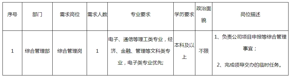 根據(jù)工作需要,現(xiàn)面向社會(huì)公開招聘綜合管理崗1名,有關(guān)事項(xiàng)公告如下: