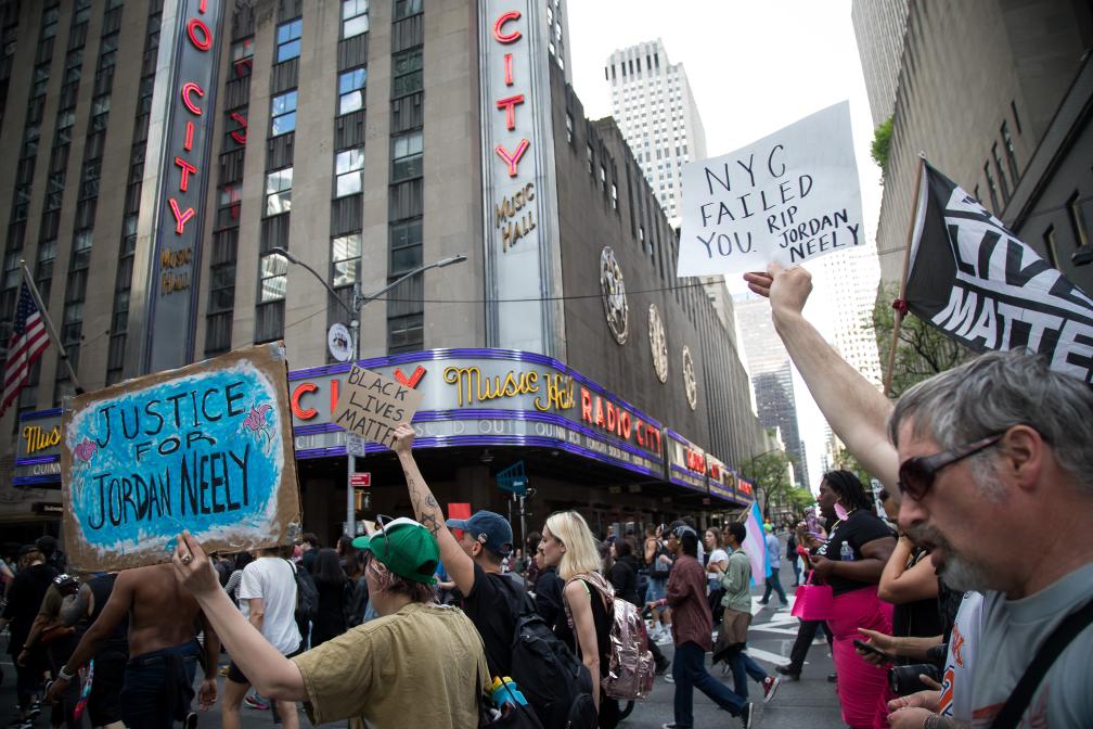 2023年5月6日,人們在美國紐約參加抗議。新華社發(fā)(郭克攝)