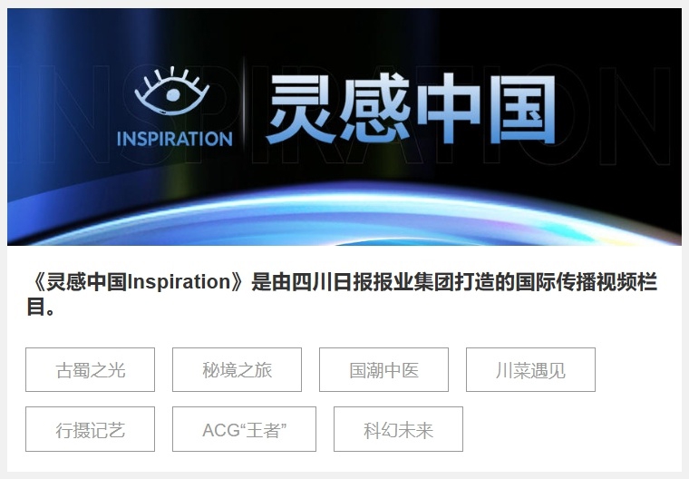 《靈感中國Inspiration》是由四川日報(bào)報(bào)業(yè)集團(tuán)打造的國際傳播視頻欄目。
