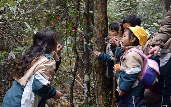 “媽媽?zhuān)憧催@棵樹(shù)上面也掛了牌子。”一大早,開(kāi)化縣實(shí)驗(yàn)幼兒園的小朋友們來(lái)到古田山探索自然的秘密。小朋友與家長(zhǎng)沿路而上,檵木、浙江大青、赤楊葉等植物被一一記錄在研學(xué)手冊(cè)上,有的小朋友還手持放大鏡觀察植物的脈絡(luò)紋理,將自己喜歡的樹(shù)葉記錄下來(lái),剪出形狀。“今天很開(kāi)心,我看到了喜歡的楊梅樹(shù),還撿到了鵝卵石。”一個(gè)小朋友興奮地歡呼到。結(jié)束室外活動(dòng),孩子們與家長(zhǎng)來(lái)到了錢(qián)江源國(guó)家公園科普館,近距離觀察野生動(dòng)植物標(biāo)本,學(xué)習(xí)錢(qián)江源國(guó)家公園動(dòng)植物相關(guān)知識(shí)。