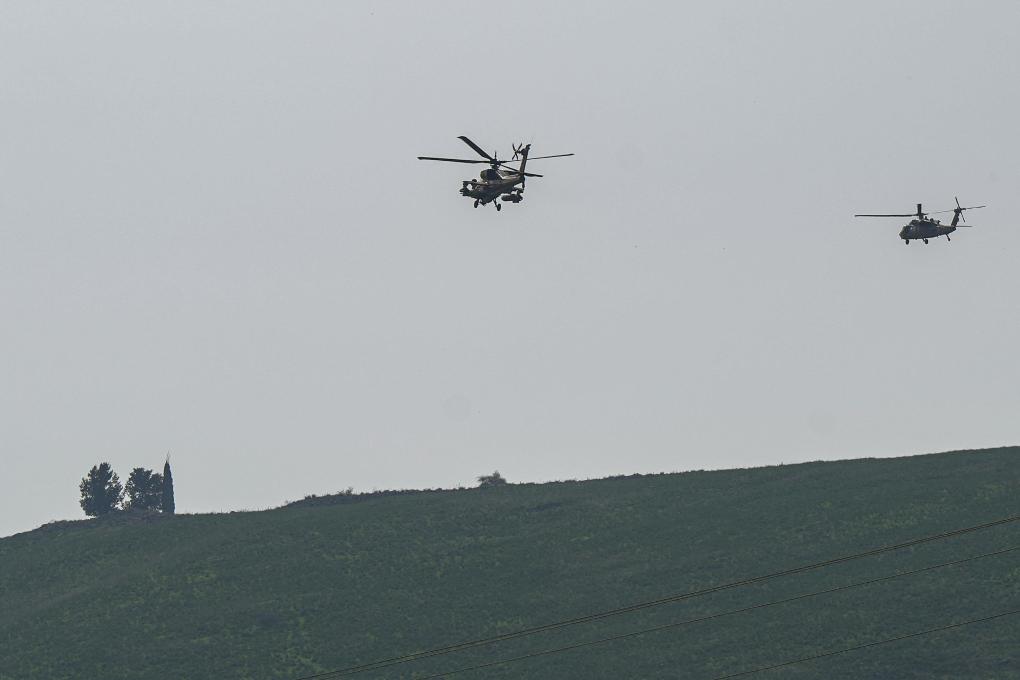 這是以色列北部邊境上空的以軍直升機(jī)(1月8日攝)。新華社發(fā)(阿亞爾·馬戈林?jǐn)z/基尼圖片社)