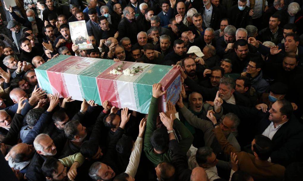 1月5日,在伊朗德黑蘭,人們參加克爾曼市爆炸襲擊事件遇難者的葬禮。新華社記者 沙達(dá)提 攝