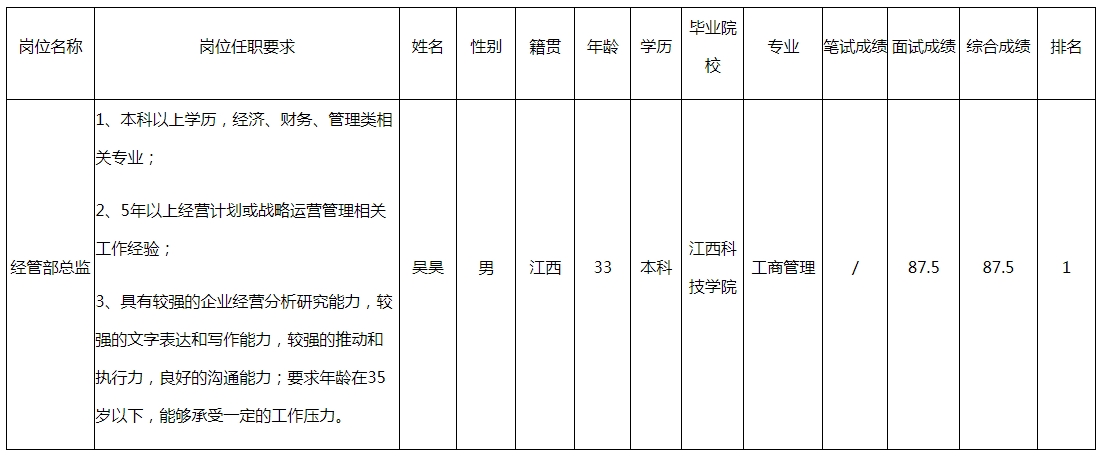 根據(jù)久和新科技(深圳)有限公司發(fā)布的招聘公告及招聘相關(guān)規(guī)定,經(jīng)筆試、面試等程序,現(xiàn)將筆試(面試)成績(jī)予以公示。