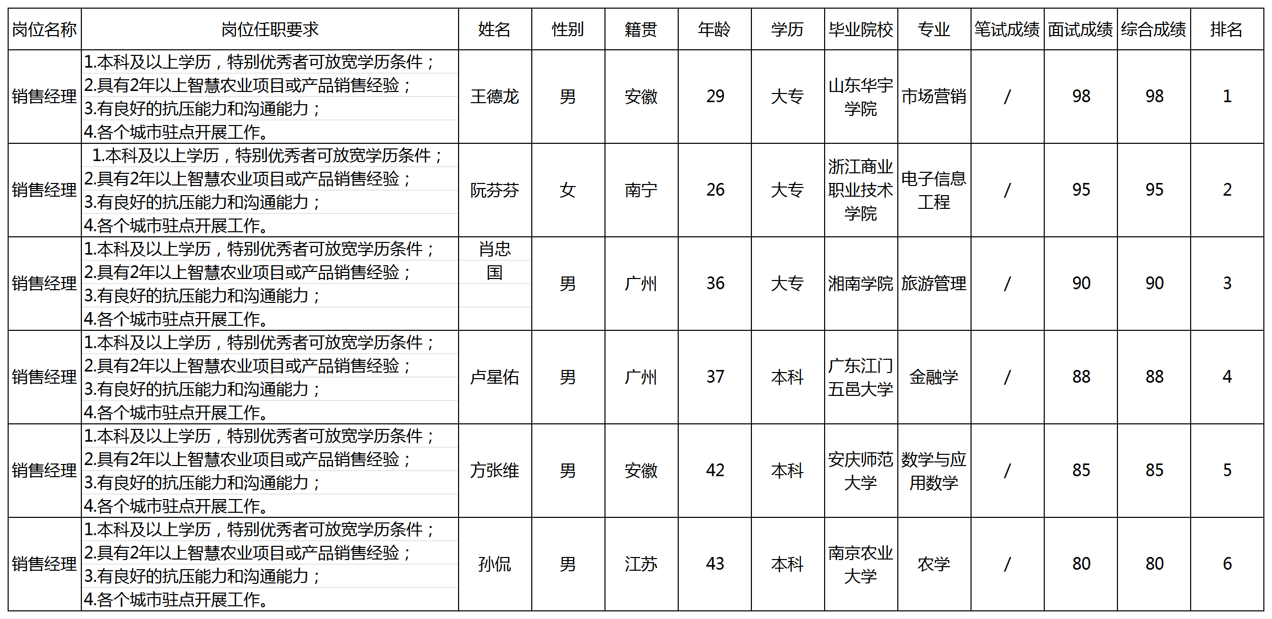 根據(jù)四川長虹云數(shù)信息技術(shù)有限公司發(fā)布的招聘公告及招聘相關(guān)規(guī)定,經(jīng)面試等程序,現(xiàn)將面試成績予以公示。