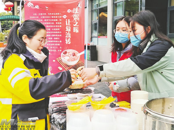 臘八節(jié)當(dāng)天,游仙區(qū)韓家脊社區(qū)舉行了“以粥之暖,讓愛(ài)流轉(zhuǎn)”活動(dòng)。工作人員為社區(qū)群眾及快遞員、網(wǎng)約車司機(jī)等群體送上熱氣騰騰的臘八粥。
