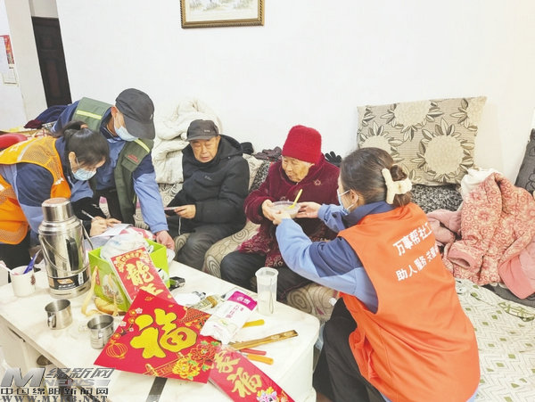 除了現(xiàn)場(chǎng)送粥外,志愿者和社區(qū)工作人員還分成小組入戶,為社區(qū)高齡、獨(dú)居老人送臘八粥。在涪城區(qū)城廂街道臨園路東段社區(qū),社區(qū)婦聯(lián)開(kāi)展了以“粥香暖寒冬,濃情話臘八”為主題的臘八節(jié)送粥活動(dòng)。