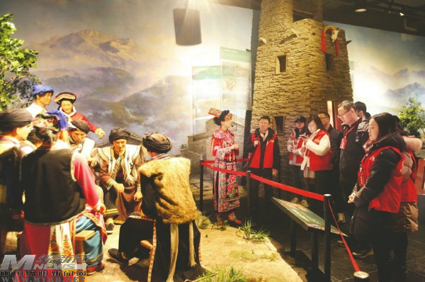 “這面墻上是‘羌’字的歷代寫法,最早可以追溯到甲骨文。”“這是我們羌族的特色建筑碉樓。”“羌醫(yī)與傳統(tǒng)中醫(yī)有很多相似之處,同樣有針灸、推拿”……在北川羌族民俗博物館,采訪團(tuán)沉浸式體驗(yàn)“大禹故里”“中國羌城”的深厚歷史文化底蘊(yùn)。2013年1月開館的北川羌族民俗博物館,集收藏、保護(hù)、展示和研究為一體,是繼承和弘揚(yáng)古羌民俗文化的重要窗口。