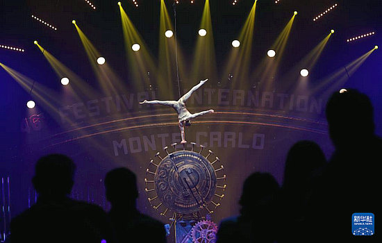 1月20日,江蘇省雜技團(tuán)演員王夢塵在摩納哥蒙特卡洛表演雜技《煉——倒立技巧》。