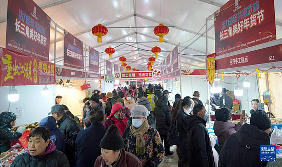 1月22日,在杭州西湖文化廣場(chǎng),市民在“長(zhǎng)三角美好年貨節(jié)”上選購(gòu)商品。