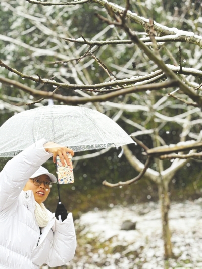 市民拍攝下雪的短視頻和圖片(記者 李春梅 攝)