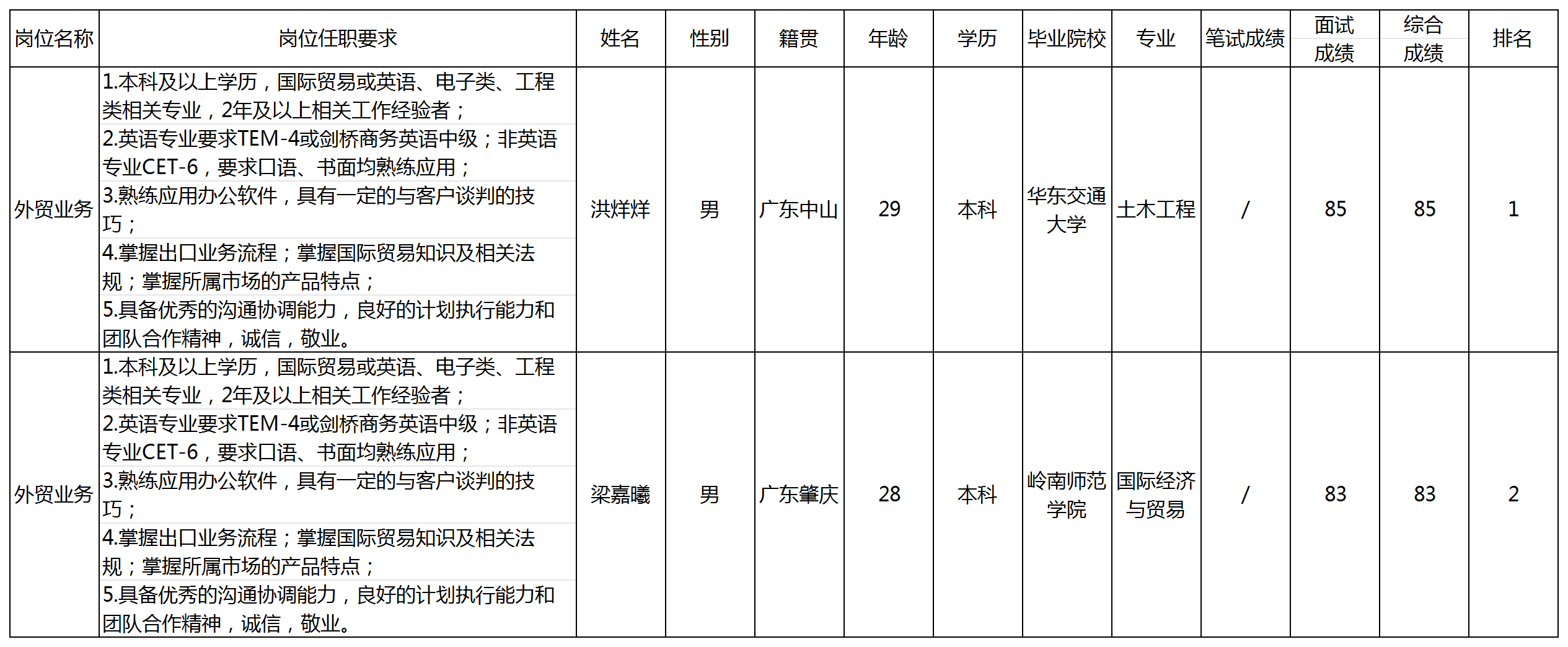 根據(jù)廣東長虹電子有限公司發(fā)布的招聘公告及招聘相關(guān)規(guī)定,經(jīng)面試等程序,現(xiàn)將面試成績(jī)予以公示。