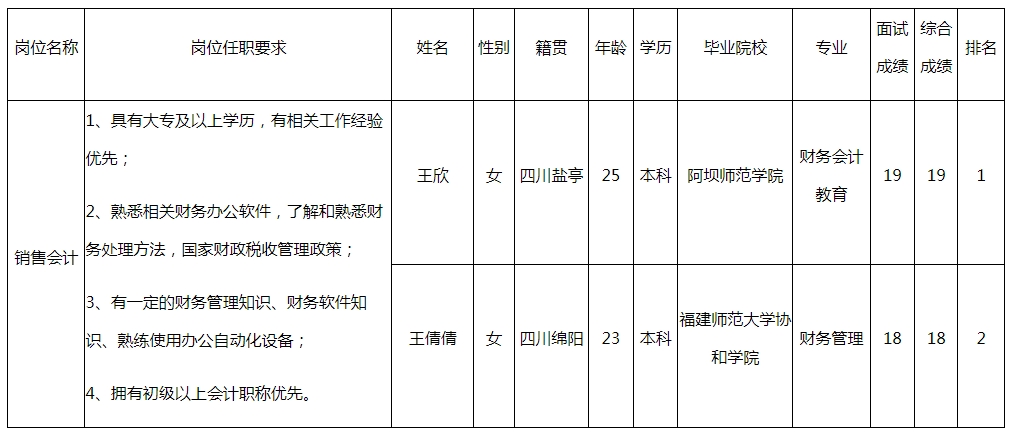 根據(jù)四川格潤中天環(huán)??萍加邢薰景l(fā)布的招聘公告及招聘相關規(guī)定,經(jīng)面試等程序,現(xiàn)將面試成績予以公示。