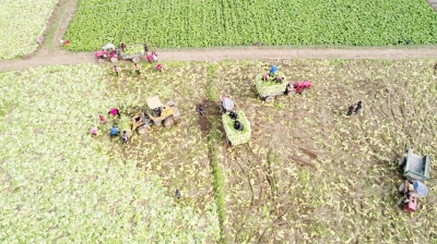 青菜又名“大葉青”“寬幫青菜”,具有易養(yǎng)種活、產(chǎn)量高、成熟期短等特點,是制作泡菜的佳品。李文表示,種青菜時間短,3個月就收獲,收了菜又可以種二季水稻,種青菜一畝田大概毛利潤在3200元左右,120畝大概能賣30至40萬元。