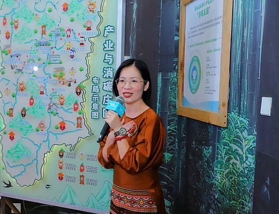 關(guān)鍵人物的其中之一,是如今任職毛道鄉(xiāng)黨委書(shū)記的黃凌鳳。2023年7月27日,“消碳莊園”項(xiàng)目交流會(huì)當(dāng)天,她穿著一身以當(dāng)?shù)乩枳宸沁z紡染織繡的傳統(tǒng)黎錦筒裙,向來(lái)賓講述關(guān)于這座小村落充滿能量的現(xiàn)在與未來(lái)。