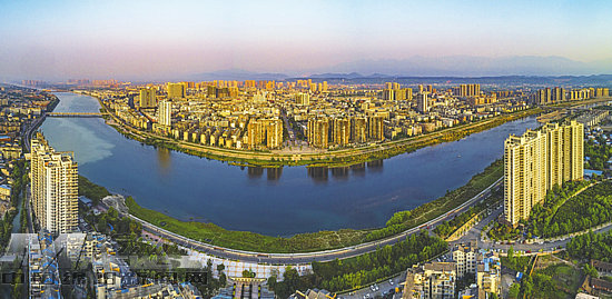 ①碧水環(huán)繞的江油城區(qū)
