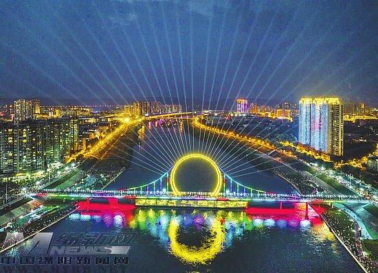 城市因環(huán)境而靚,生活因品質(zhì)而美。近年來(lái),江油圍繞城鄉(xiāng)建設(shè)總體部署,按照“工業(yè)強(qiáng)市、文旅興市、開(kāi)放活市、生態(tài)美市”的城市發(fā)展理念,以建設(shè)宜居、宜游、宜商、宜業(yè)的生態(tài)文明城市為目標(biāo),打造金外灘跨涪江人行橋城市新地標(biāo),其獨(dú)特的“故鄉(xiāng)明月”造型成為一道亮麗的城市風(fēng)景線,催生城市活力。