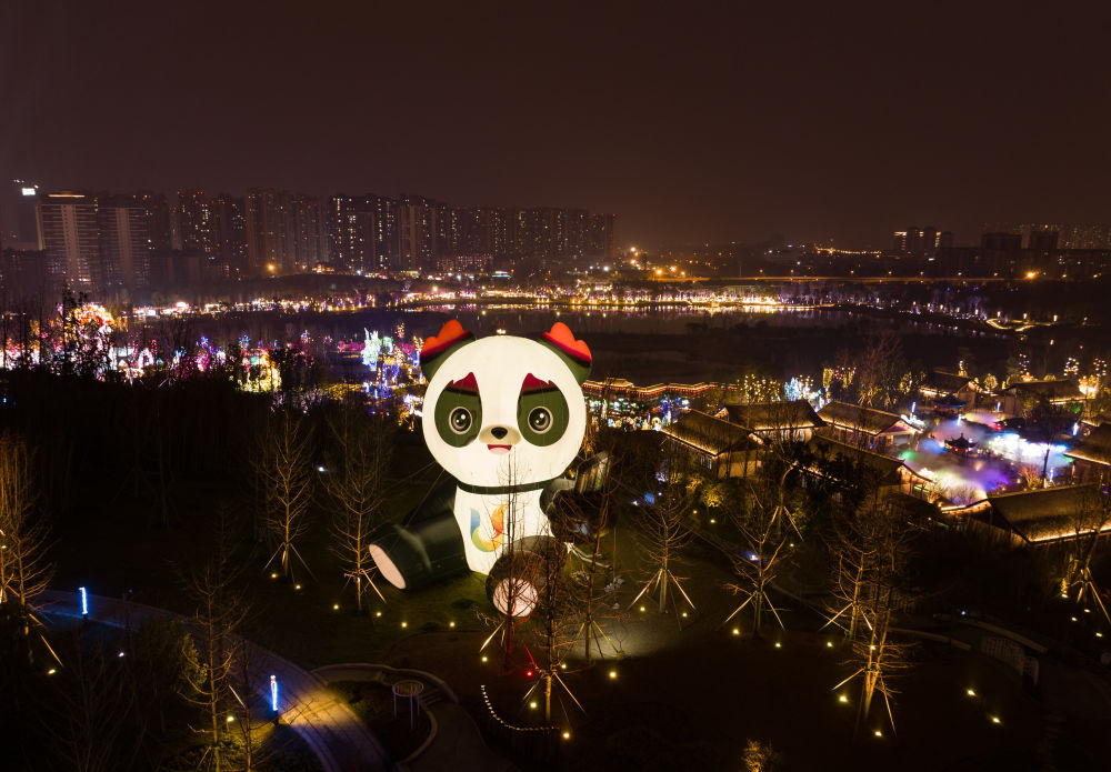 這是成都大運(yùn)會(huì)吉祥物“蓉寶”巨型燈組。