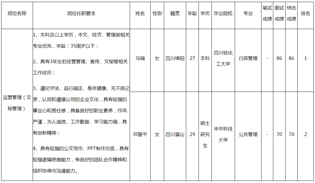 根據(jù)四川九州電子科技股份有限公司發(fā)布的招聘公告及招聘相關(guān)規(guī)定,經(jīng)筆試、面試等程序,現(xiàn)將筆試(面試)成績(jī)予以公示。