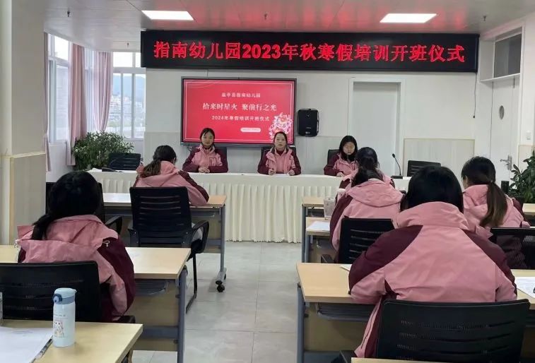 為了貫徹落實鹽亭縣教體局2023年秋寒假培訓(xùn)的指導(dǎo)精神,進(jìn)一步提升全園教師的專業(yè)能力,加強教師理論素養(yǎng)和實踐能力,造就一支能適應(yīng)幼兒園不斷發(fā)展、改革與創(chuàng)新的師資隊伍,結(jié)合本園實際情況,鹽亭縣指南幼兒園開展了以“拾來時星火,聚前行之光”為主題的期末培訓(xùn)學(xué)習(xí)暨表彰總結(jié)大會。