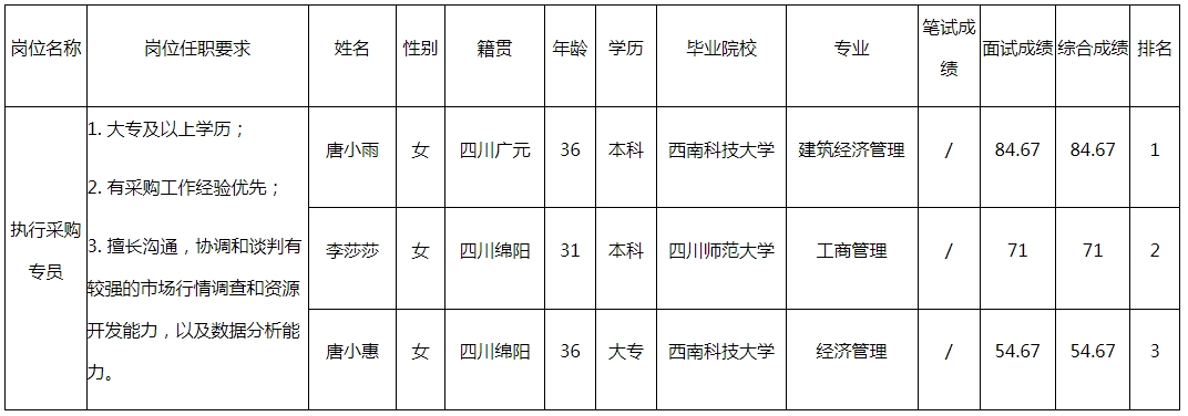 根據(jù)四川愛聯(lián)科技股份有限公司發(fā)布的招聘公告及招聘相關(guān)規(guī)定,經(jīng)筆試、面試等程序,現(xiàn)將筆試(面試)成績予以公示。