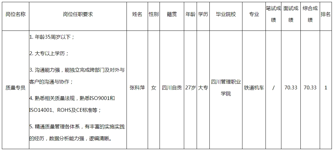 根據(jù)四川愛聯(lián)科技股份有限公司發(fā)布的招聘公告及招聘相關(guān)規(guī)定,經(jīng)筆試、面試等程序,現(xiàn)將筆試(面試)成績予以公示。