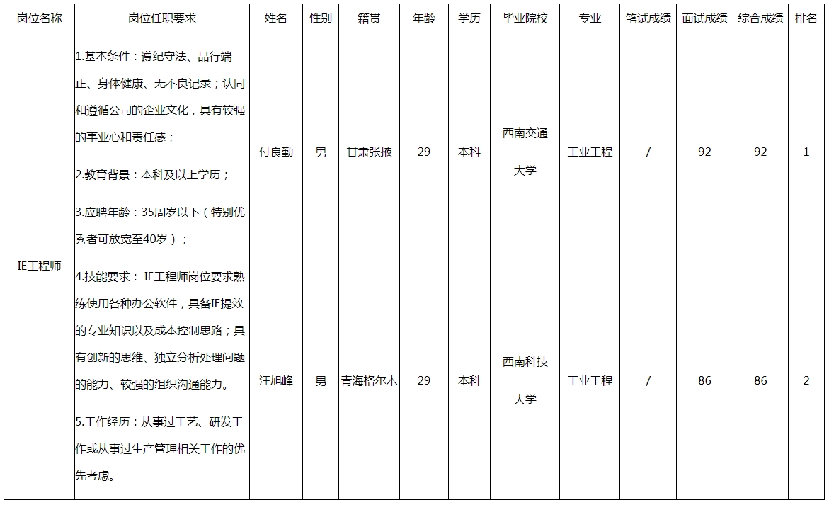 根據(jù)長(zhǎng)虹空調(diào)公司發(fā)布的招聘公告及招聘相關(guān)規(guī)定,經(jīng)面試等程序,現(xiàn)將面試成績(jī)予以公示。