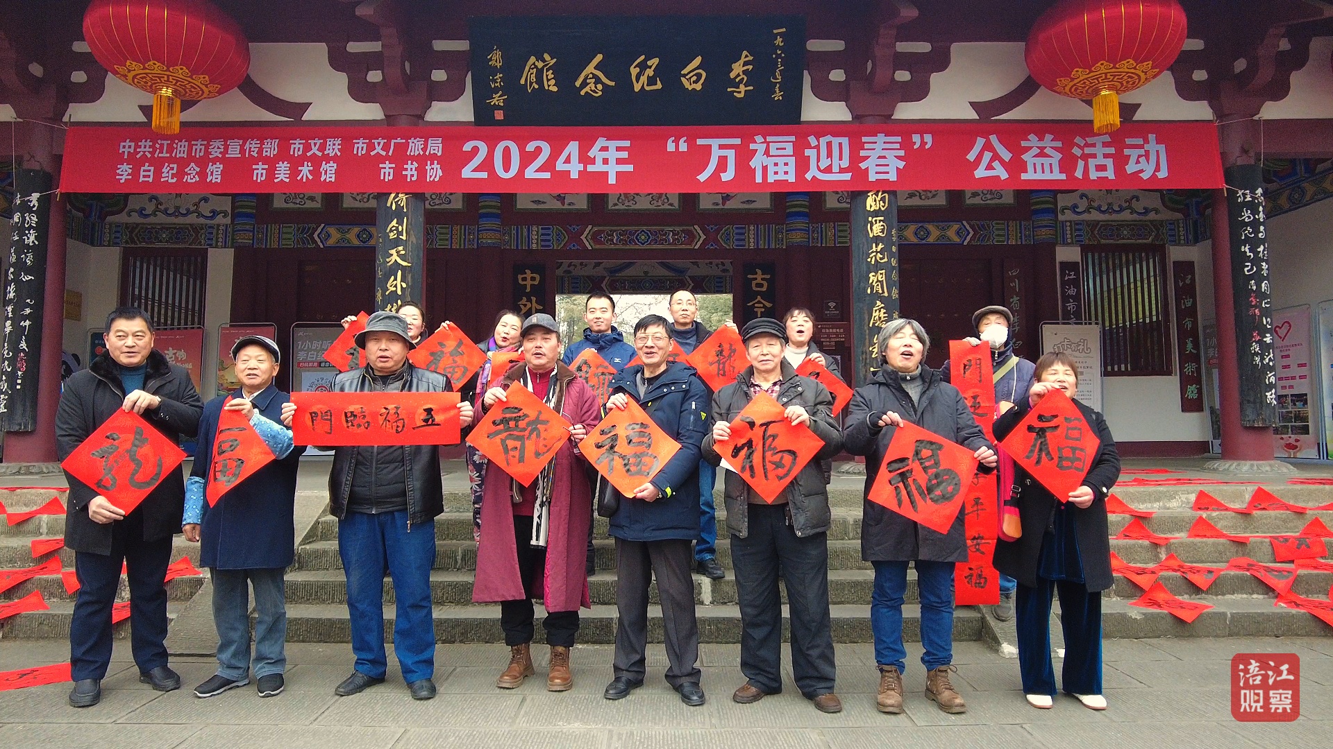 在江油市李白紀(jì)念館前廣場(chǎng),江油市委宣傳部組織“萬(wàn)福迎春”贈(zèng)寫(xiě)春聯(lián)公益活動(dòng),向市民送出新春的美好祝福。