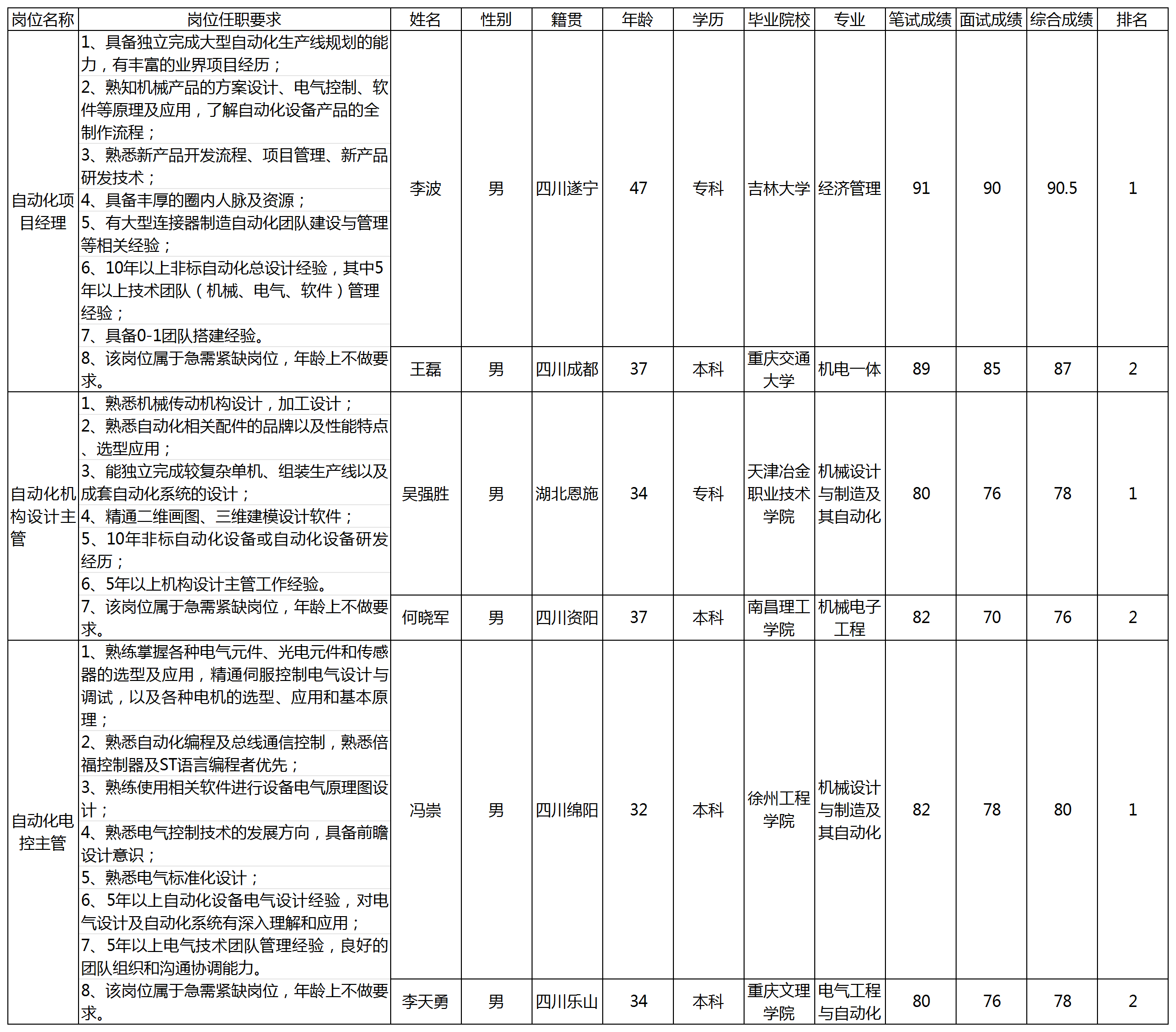 根據(jù)四川華豐科技股份有限公司發(fā)布的招聘公告及招聘相關(guān)規(guī)定,經(jīng)筆試、面試等程序,現(xiàn)將筆試(面試)成績予以公示。