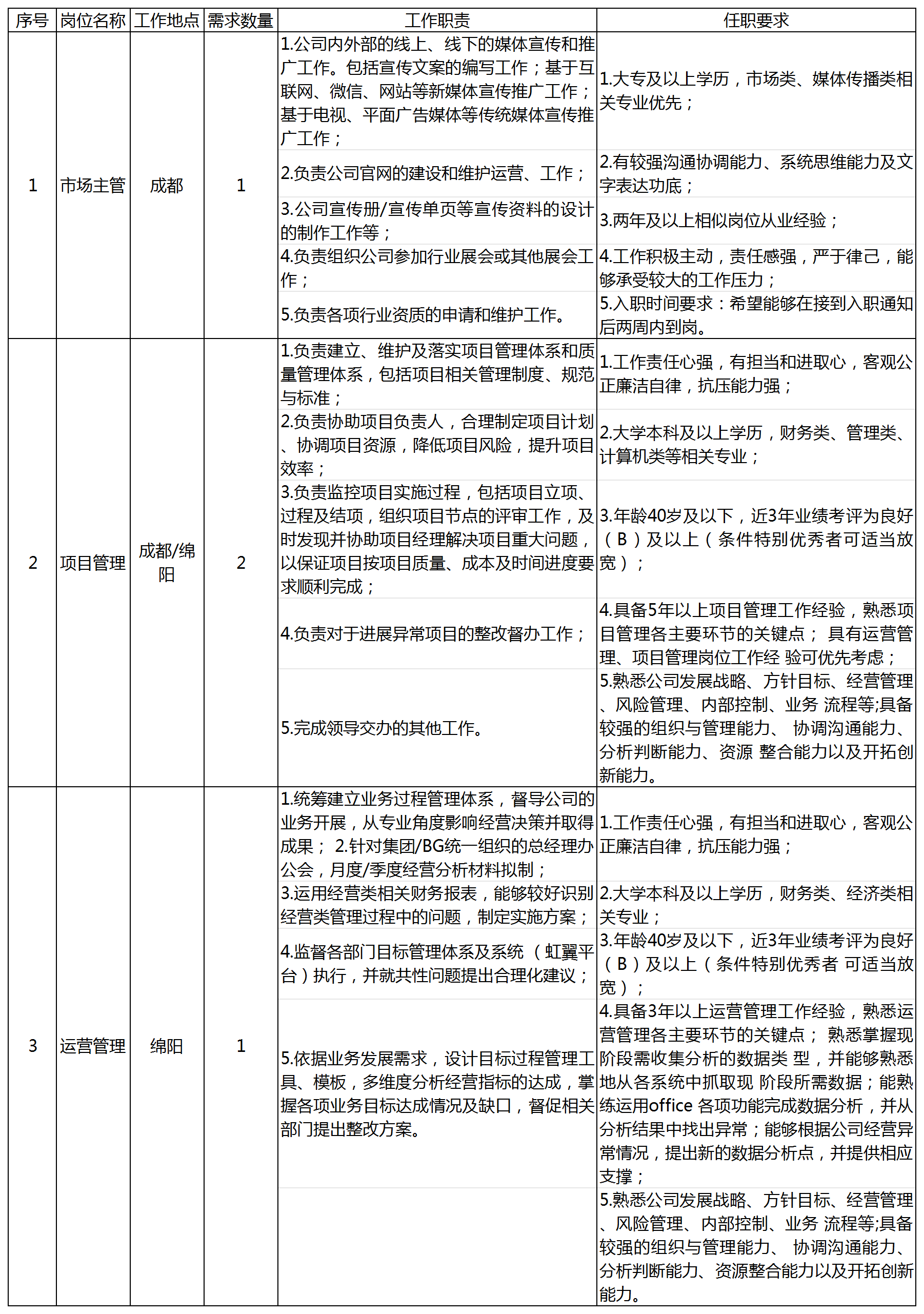 根據(jù)公司經(jīng)營發(fā)展需要,面向社會公開招聘以下崗位: