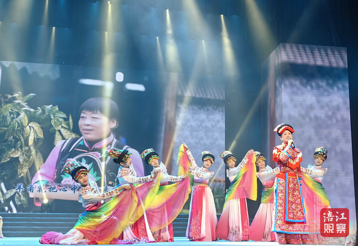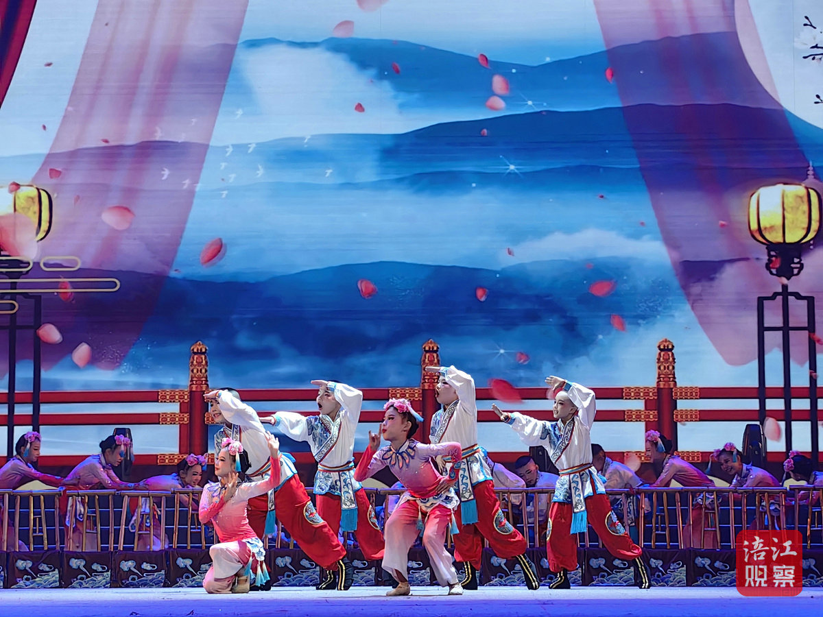 當(dāng)晚7時30分,隨著劇場燈光的變化,歌舞《花開盛世》為演出開場。隨后,舞蹈《被單戲》登場,小朋友充滿童趣的演出,展示了綿陽傳統(tǒng)文化保護(hù)和戲劇進(jìn)校園取得的成果。在隨后的演出中,女子舞蹈《茉莉花》、歌伴舞《潼城緣夢》、舞蹈《夏夜》、歌伴舞《春到石椅》等,以多樣的文藝形式展現(xiàn)鄉(xiāng)村新貌,點(diǎn)贊百姓幸福生活。