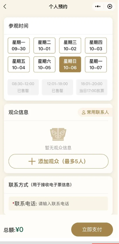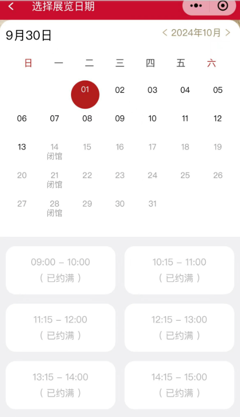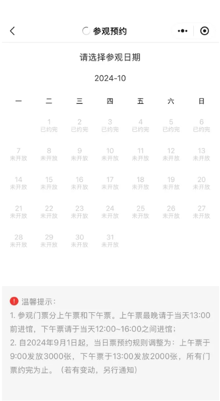 10月1日至6日參觀預(yù)約已約滿