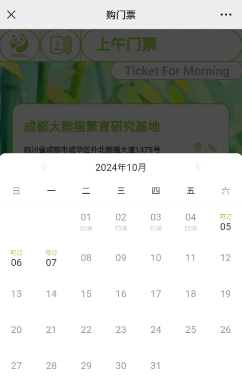 成都熊貓基地票務(wù)小程序顯示