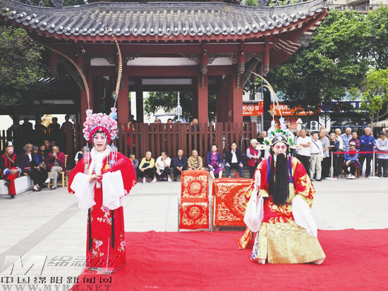 生旦凈末丑,演繹人間百態(tài);昆高胡彈燈,唱盡人生百味。在“綿州記憶”特色街區(qū)天青苑川劇演藝中心,正上演著川劇《四郎坐宮》。曲折跌宕的情節(jié)、鮮明生動(dòng)的人物形象和優(yōu)美的唱腔,贏得臺(tái)下掌聲陣陣。